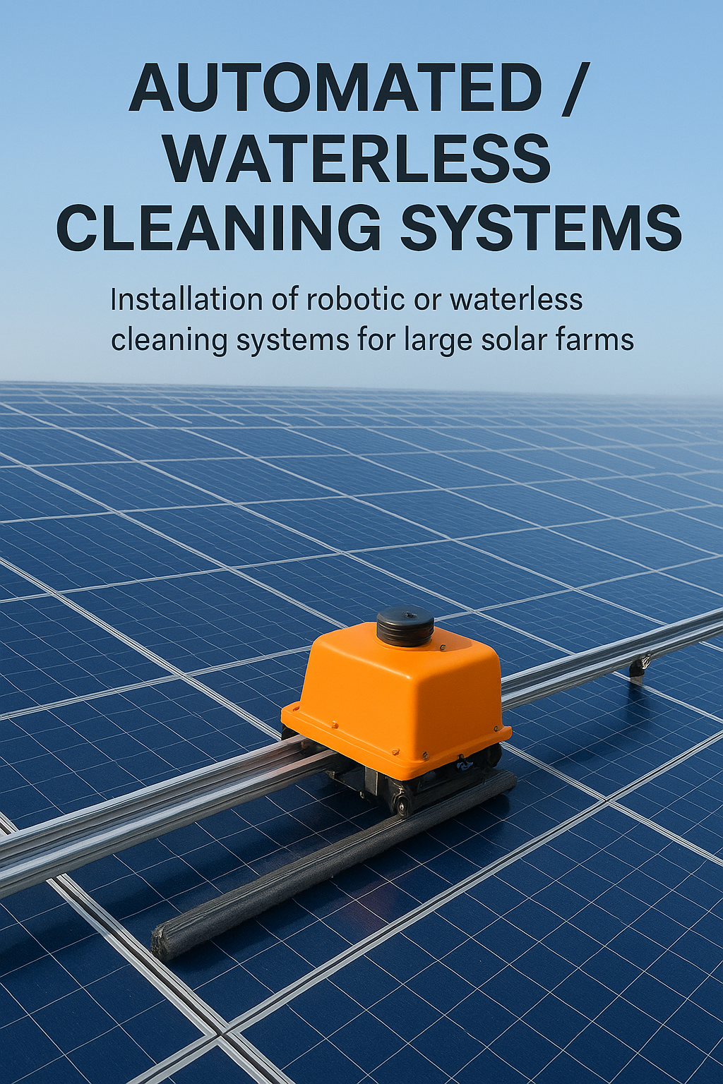 Automated / Waterless Cleaning Systems are designed for large solar farms.